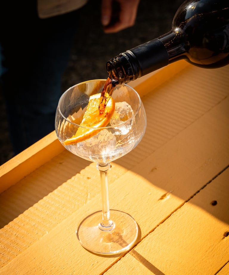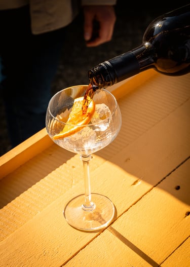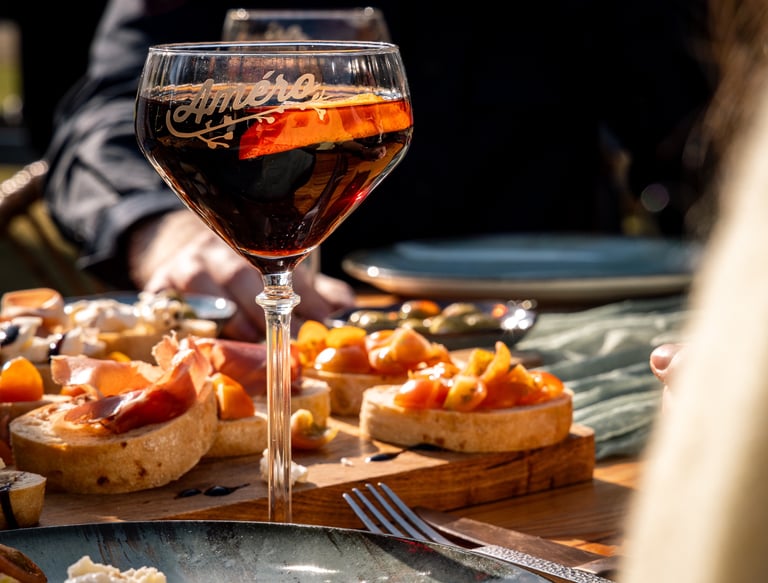 Een bitter-zoet aperitief op basis van amer en witte wijn. Kant en klaar te serveren met ijs en een schijfje sinaas. De perfecte aperitief voor bij uw apero!